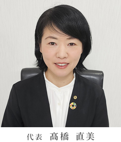 代表の髙橋直美と申します。2010年に社会保険労務士、行政書士として開業登録以来、信頼第一をモットーに、正確かつ丁寧に対応してまいりました。そして、社会保険労務士業務については、2023年1月に法人化いたしました。おかげ様で、多くの関与先様から、ご支持をいただき、毎日様々な経験をしながら、関与先様とともに、成長させていただいております。